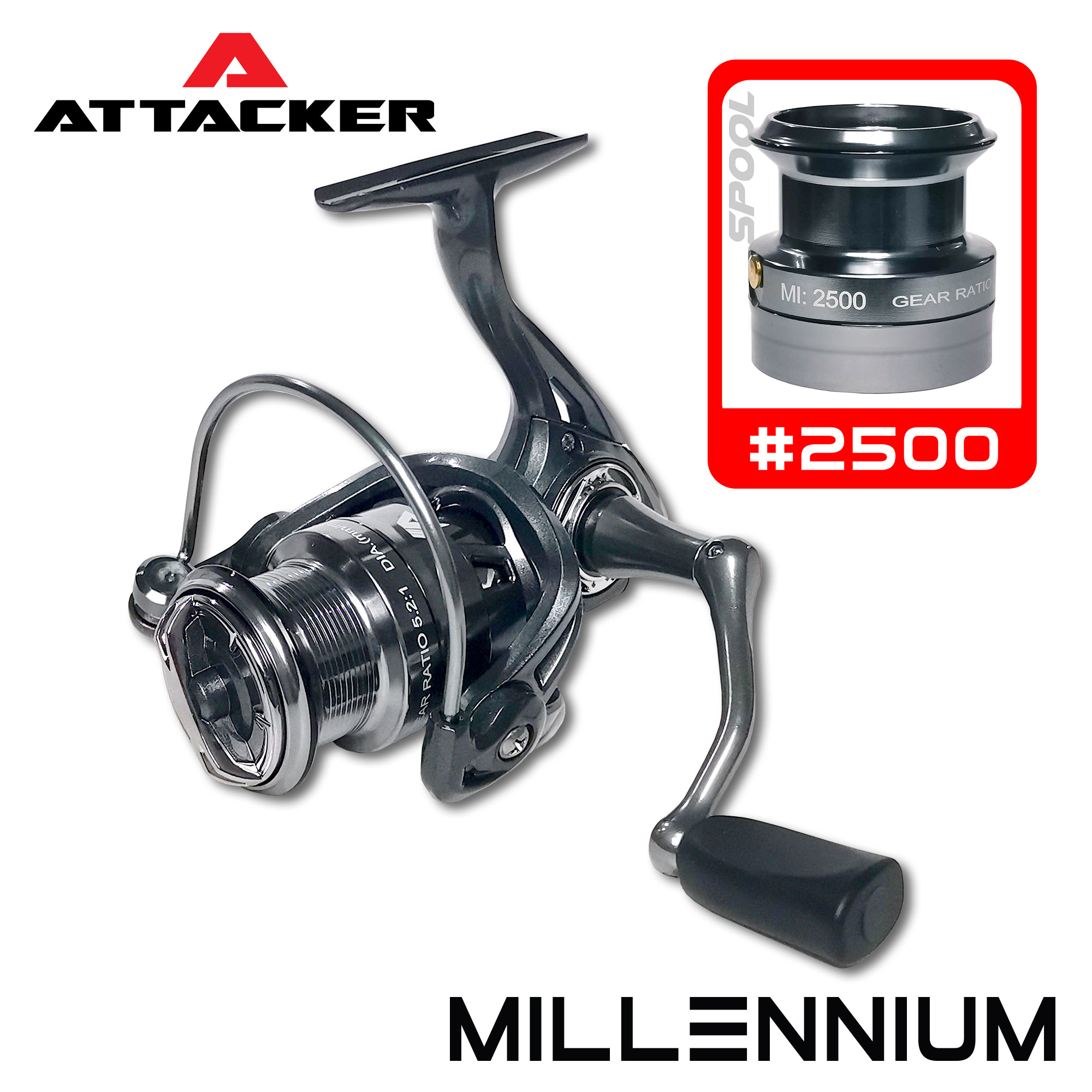 รอกตกปลาแบบสปินนิ่งรุ่นใหม่จากค่าย ATTACKER MILLENNIUM ที่มาพร้อมกับการพัฒนาใหม่ด้วย แขนมือหมุนแบบเกลียวที่แข็งแรงยิ่งขึ้นผนวกกับน๊อบที่ใหญ่จับถนัดมือ ช่วยเพิ่มความสมดุล บอดี้แข็งแรงทนทานมากขึ้น เพิ่มความโดดเด่นเมื่อเล่นแสงกับสีเมทัลลิก รอบหมุนลูกปืนลื่นและพริ้วมากกว่าที่เคยมาพร้อมกับระบบควบคุมสมดุล และระบบล๊อคป้องกันการตีกลับชนิดไว้วางใจได้ เหมาะกับนักตกปลาทั่วไป และมืออาชีพ