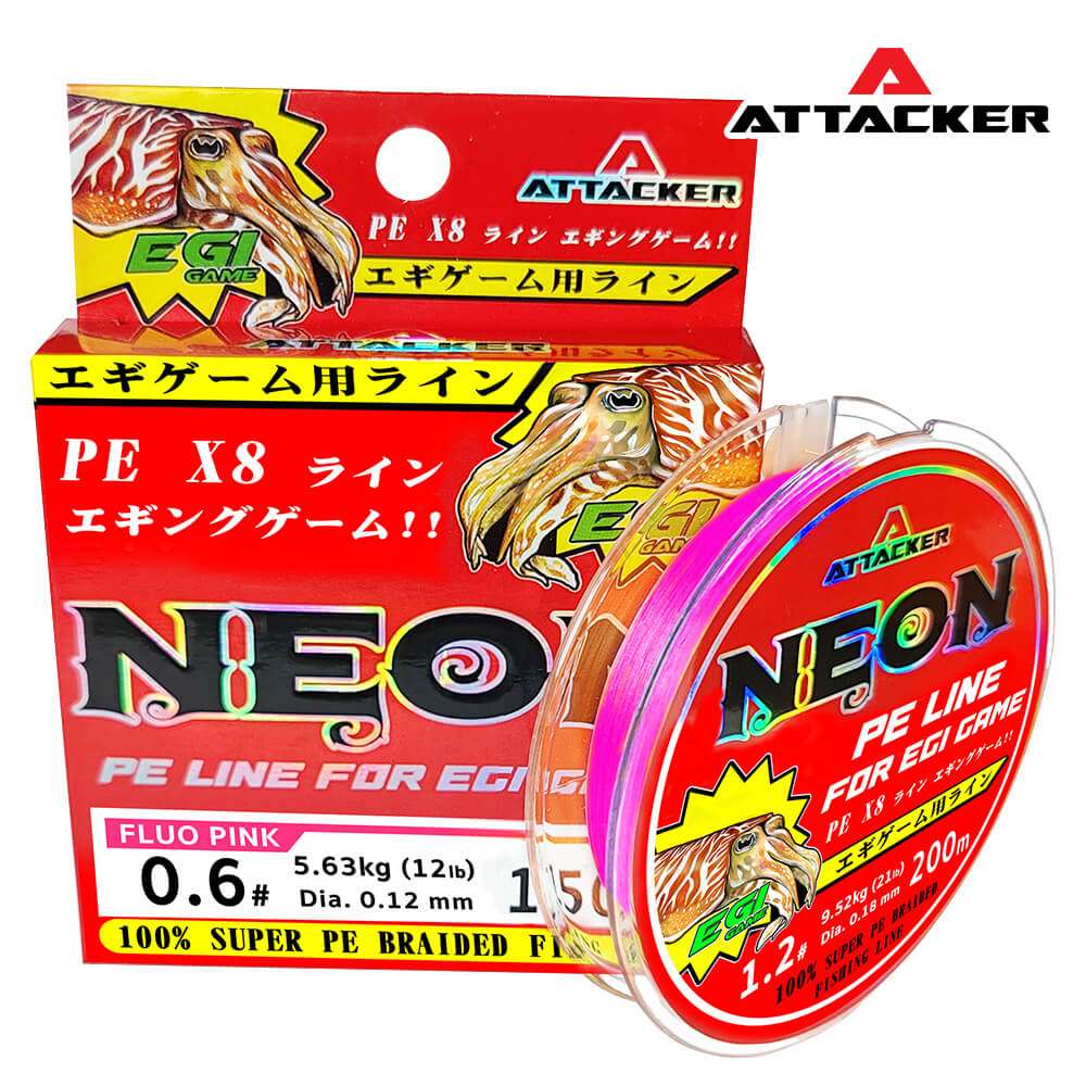 สายตกหมึก สายพีอี ถัก 8 ATTACKER NEON สีชมพู ขนาด 150M สายพีอี ถัก 8 รุ่นใหม่ล่าสุดจากค่าย ATTACKER สีส้ม สายตกหมึกใหม่ล่าสุดที่มาพร้อมวัสดุคุณภาพสูงจากญี่ปุ่น “ตัวสายเส้นเล็ก เหนียว นุ่ม ลื่น ตีไกล” ซึ่งเหมาะกับการใช้งานกับตกหมึกทุกประเภท อีกทั้งยังมีขนาดมากมายให้เลือกอีกด้วย หากนักล่าหมึกพร้อมแล้วจัดส่ย ATTACKER NEON แล้วออกล่าหมึกกันได้เลย