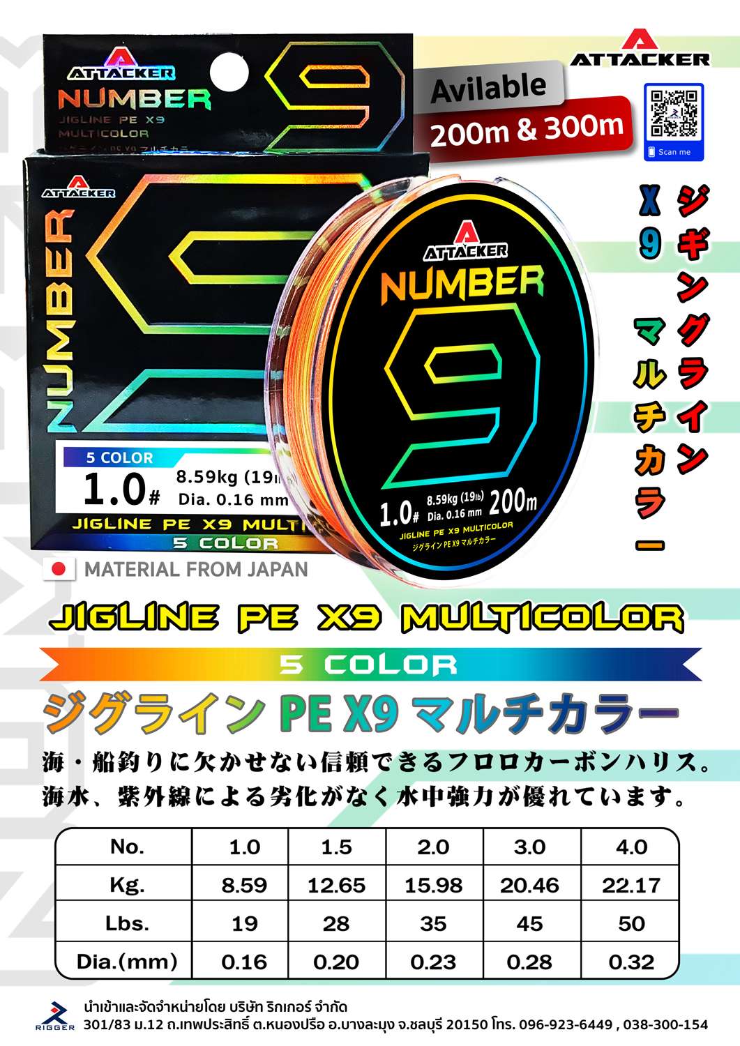 สายตกปลา สายพีอี ถัก 9 ATTACKER NUMBER 9 MULTICOLOR # 1.5
