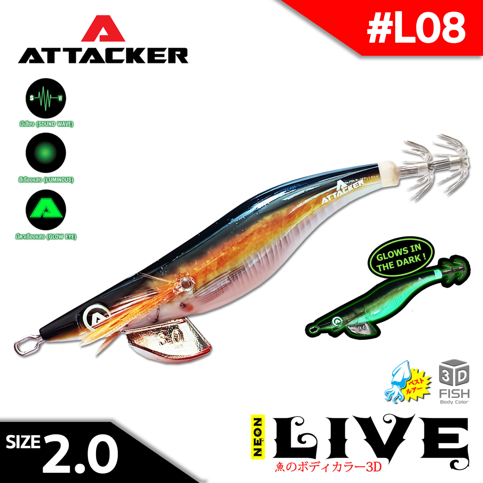 โยกุ้งตกหมึก ATTACKER NEON LIVE SQUID JIG มีทั้งหมด 15 สี 3 ขนาด คือ 2.0 , 2.5 และ 3.0 เรืองแสง-เสียงดังสะท้อนแสงสีสดใหม่ทุกตัว ออกตกหมึกเมื่อไร มีติดไว้ไม่ผิดหวัง ราคาหลักร้อยแต่คุณภาพเกินราคาต้อง “นีออน ไลฟ์”